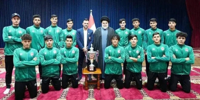 أعرب زعيم التيار الوطني الشيعي مقتدى الصدر، الثلاثاء، عن تمنياته بتوفيق المنتخب العراقي في مباراته المقبلة، مؤكداً أن فوزه "سيحطم الكثير من الحزن والقلق والخوف" الذي تمر به المنطقة.