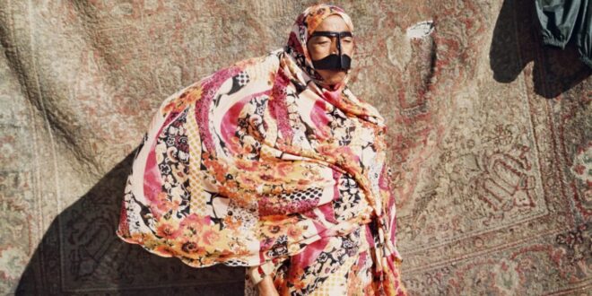 — تقف "سليمة" في فناء منزلها، بثيابها المزخرفة بدرجات الأحمر والوردي والبرتقالي الزاهية، فيما تتدلّى خلفها سجادة معلّقة لا تزال مثقلة بمياه الغسل، حيث تبدو الأرض وكأنها تنبض بالضوء.